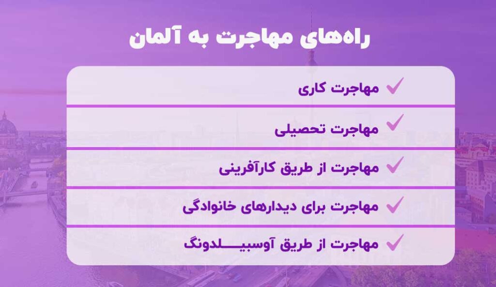 به طور خلاصه روشهای مهاجرت به آلمان شامل موارد زیر میشوند: